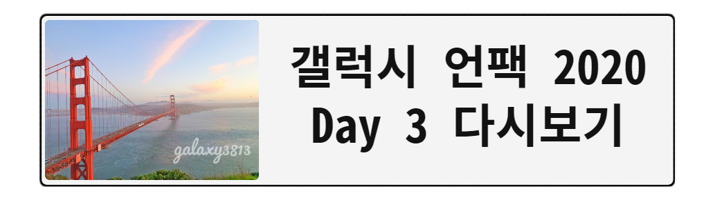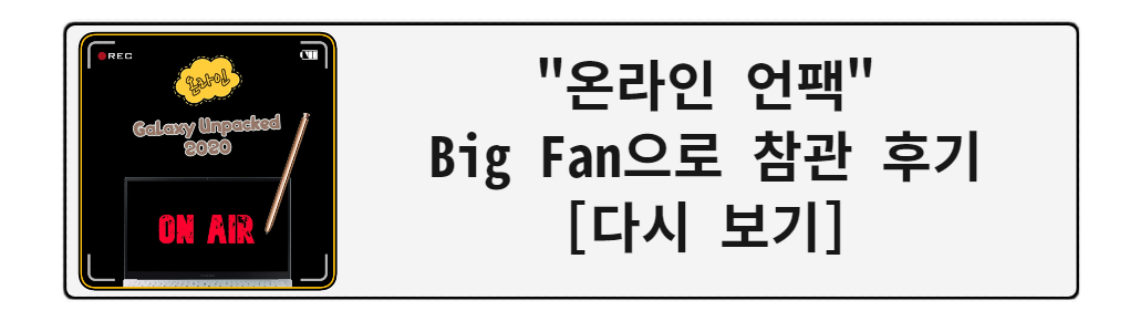어느덧 벌써 2020년 하반기가 다가왔습니다. 하반기는 갤럭시 신제품들이 쏟아지는 파티가 기다리고 있었죠. 저희 Big Fan 3기 멤버들은 하반기 갤럭시 언팩 2020 행사에도 초청을 받았는데요, 하반기 언팩 행사는 코로나 때문에 미국 현장 참관이 아닌 온라인으로 진행이 됐었답니다.