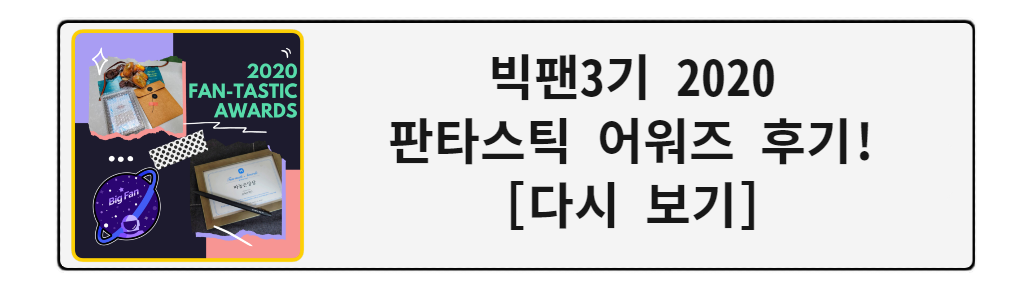 이렇게 12월 연말 시상식까지 모두 끝나고 오늘이 2020년 마지막 날인 12월 31일이네요. 정말 올해는 아무것도 한게 없는듯한 느낌이 들었고 정신없이 지나간 1년이었던 것 같습니다.