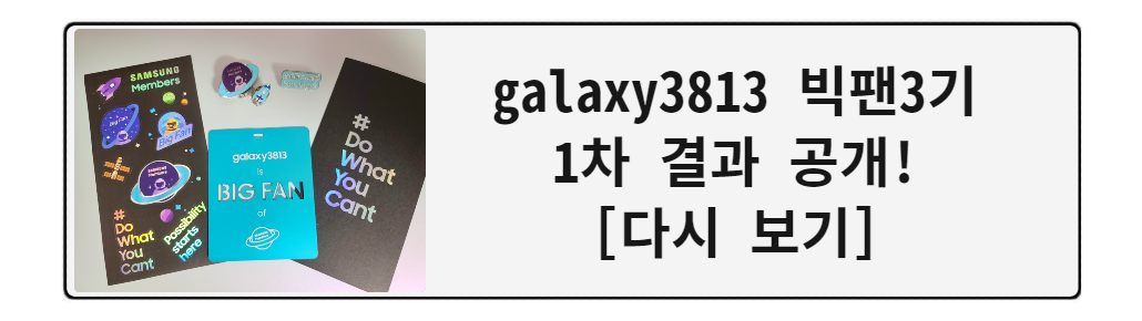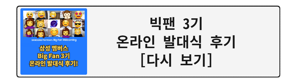 그리고 5월, 삼성 멤버스 Big Fan 2기가 끝나고 3기 모집이 시작되었죠. 당연히 저도 3기에 지원을 했고 합격해서 최종 인터뷰까지 마치고 Big Fan 3기의 본격적인 활동이 시작되었답니다~!