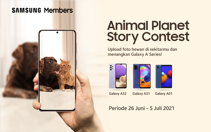 Bagikan foto dan cerita hewan di sekitarmu dan dapatkan kesempatan menang Galaxy A Series di Animal Planet Story Contest. 3 foto terbaik akan mendapatkan hadiah dari Samsung Members. Klik di sini untuk membaca mekanisme lomba. Periode kontes dan voting: 26Juni -5 Juli 2021.